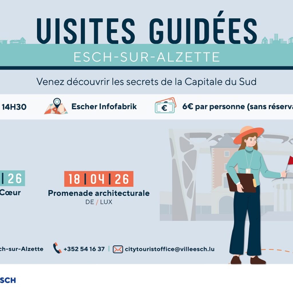 Balade historique: Go on a journey through time and learn more about Esch’s history. Visitors can also follow Esch’s architectural trail at their own pace without a guide, thanks to the Audioguide