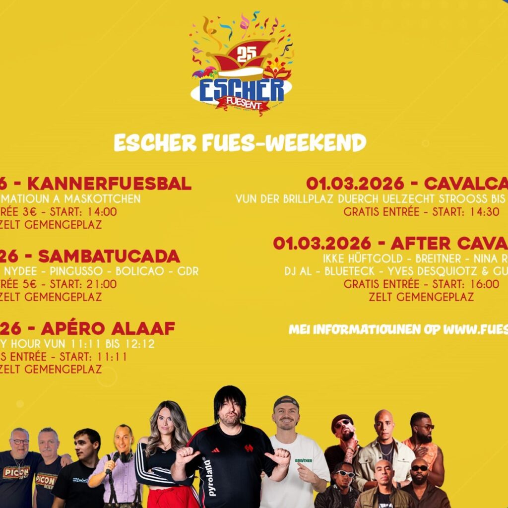 .FR - Le centre-ville d’Esch va vibrer du 27 février au 1er mars pour la 25ᵉ édition de la Cavalcade d’Esch 🎭 ! Trois jours de couleurs, de musique et de rires pour petits et grands.