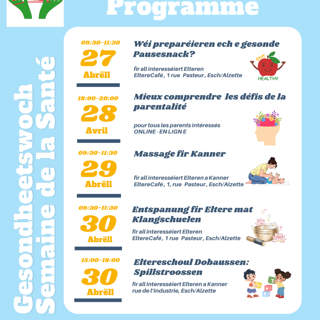 Limitéiert Plazen! Aschreiwung: https://www.kannerschlass.lu/de/angebot/eltereschoul/agenda-de