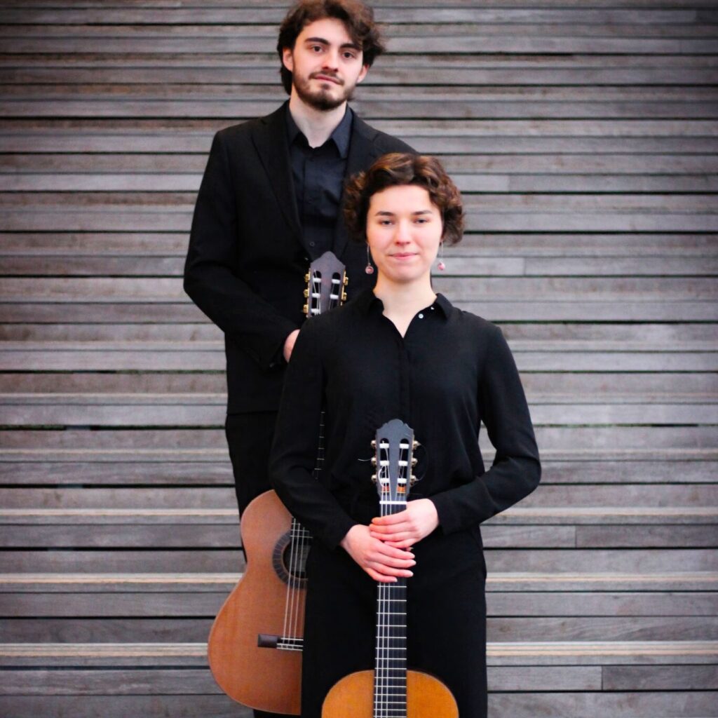 Formé à Amsterdam par Michele Reali et Eva Victoria Schockmel, le Duo Encordé s’inspire de l’idée de « s’encorder » pour symboliser unité et confiance. Leur complicité fait rayonner un répertoire allant de l’impressionnisme de Castelnuovo-Tedesco à l’élégance romantique de Mendelssohn, en passant par le charme espagnol de Rodrigo. Curieux et engagés, ils signent aussi leurs propres arrangements de Debussy, de Falla ou Ravel. Habitués des scènes d’Amsterdam, ils viennent d’être distingués par un 3e prix au Martinez Guitar Duo Competition.