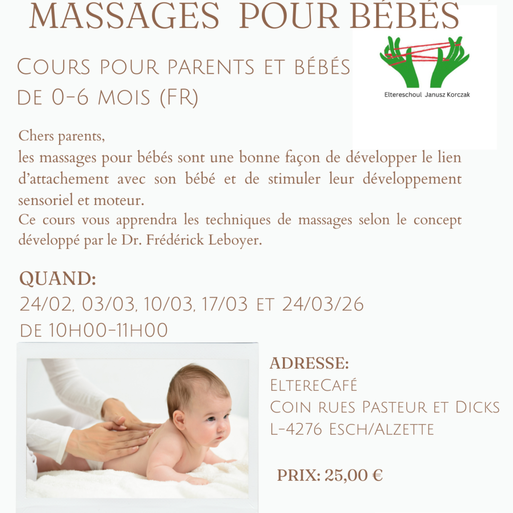 .Ce cours vous apprendra les techniques de massages selon le concept développé par le Dr. Frédérick Leboyer.