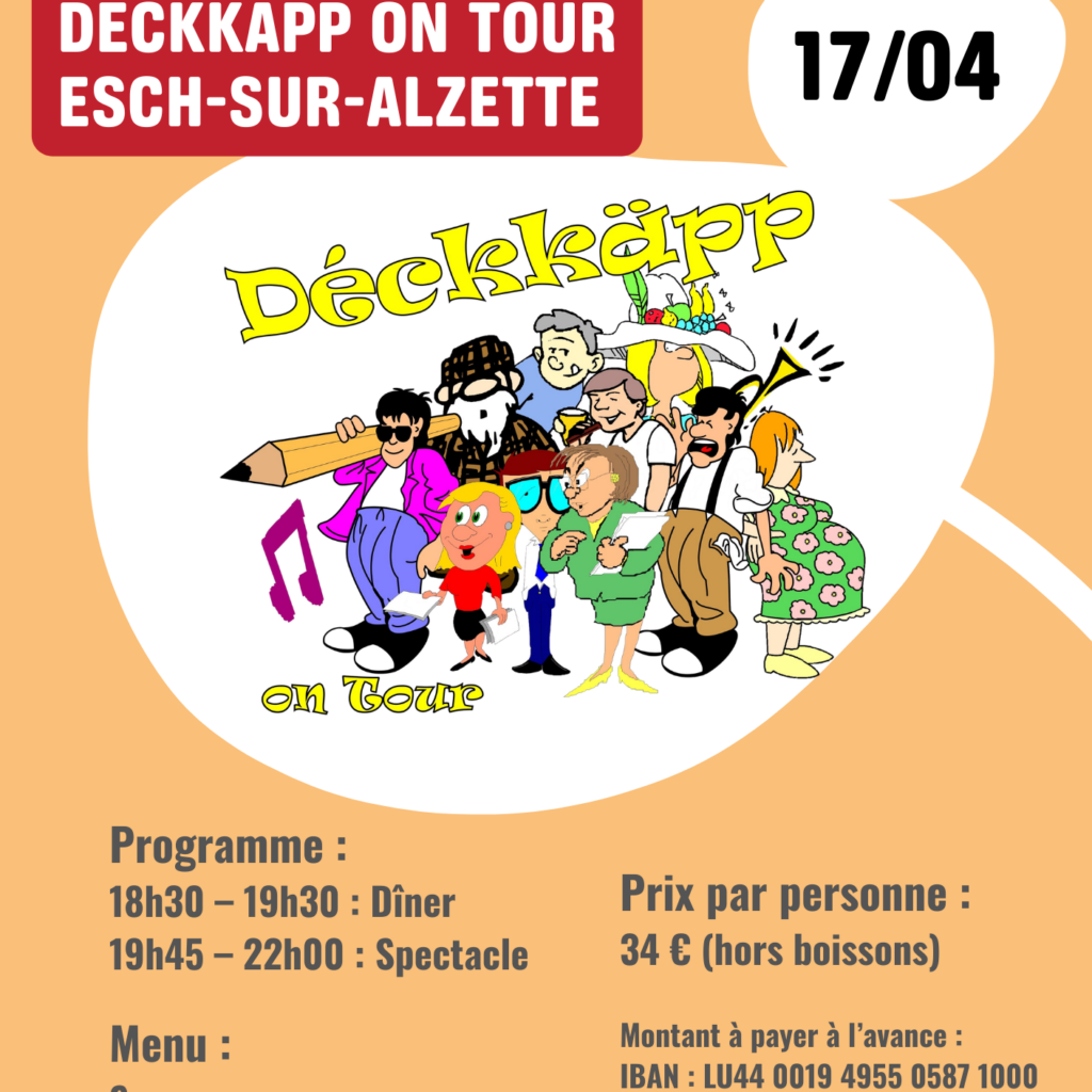 Nach vielen erfolgreichen Stopps in verschiedenen Gemeinden Luxemburgs bringen die Déckkäpp ihre bewährte Mischung aus Witzen und Unterhaltung nun in unsere Jugendherberge.
