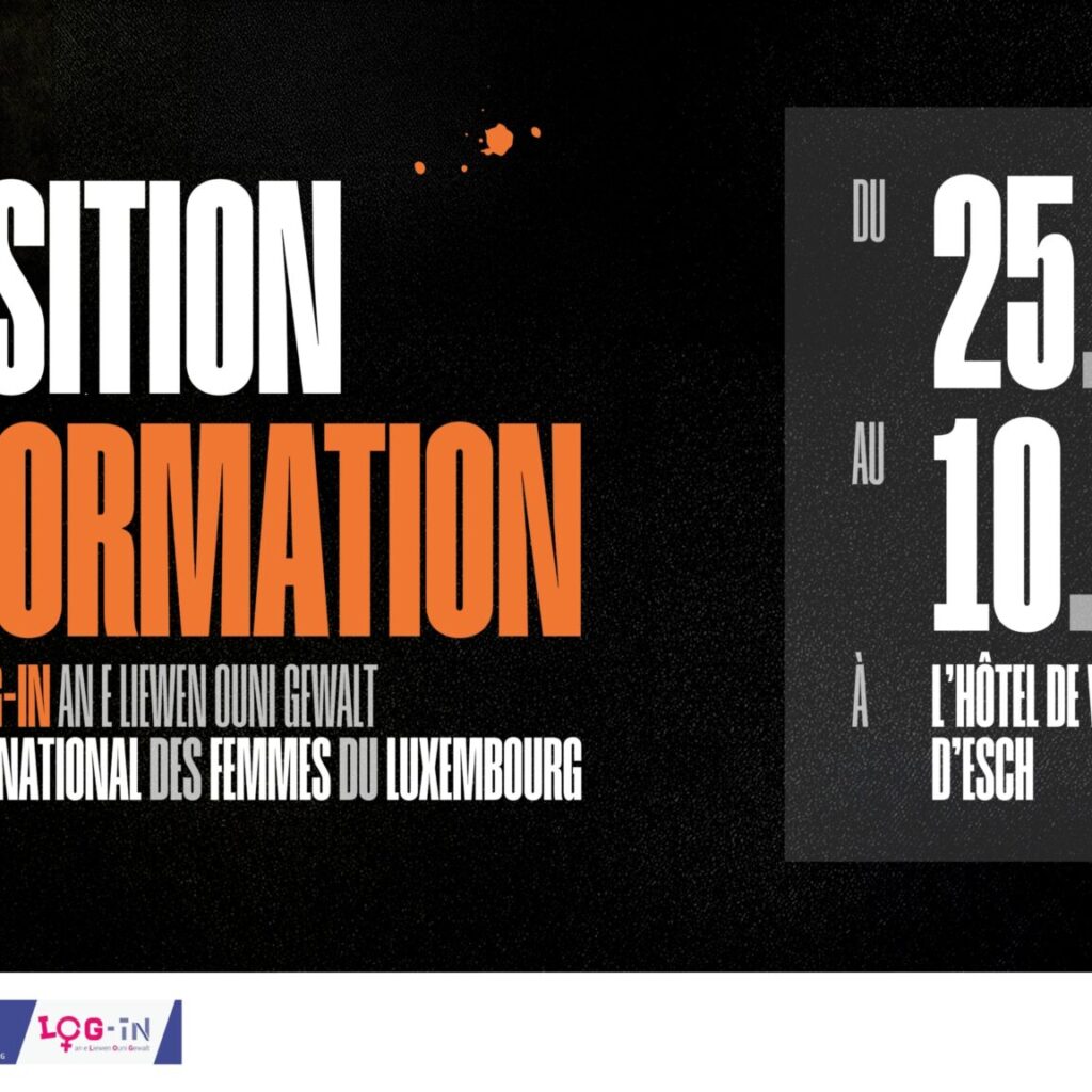 Dans le cadre de l'Orange Week, le Service Log-In – An e Liewen ouni Gewalt du Conseil National des Femmes du Luxembourg propose une exposition à l'Hôtel de Ville d’Esch, destinée à informer et sensibiliser le public à la violence domestique et à la violence basée sur le genre.